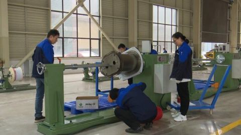 中韶电气产业园项目现场,工人们正在对厂房设备进行安装调试。