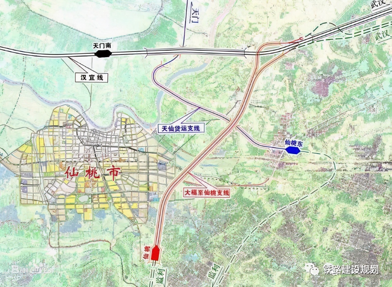 武汉至仙桃城际铁路是湖北省继武咸、武黄、武冈、汉孝之后的第五条城际铁路,从汉宜线仙桃大福接轨至仙桃城区(与汉宜共线71公里),设计时速200公里。