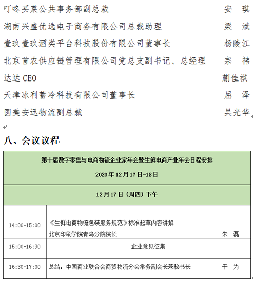 第十届数字零售与电商物流企业家年会原中国电子商务与物流企业家年会,迄今为止已经连续成功举办九届。历届年会都以超高的嘉宾规格与会议规模、广泛的媒体传播获得了良好的行业口碑与社会反响,是数字零售与物流领域最具影响力的行业大会,也是推进我国数字零售与电商物流发展的一次重要的思想盛宴,本届年会”以“智能创新、慧聚生态 ”为主题,突出数字化、科技化、智慧化转型特点,聚焦数字零售、电商物流、科技绿色循环包装等行业细分领域的最新市场动态,疫情为生鲜平台带来特殊发展机遇,也对食品的供应、安全、保鲜、溯源以及配送时效提出了新的考验。